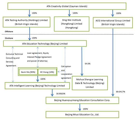 “we,” “us,” “our company,” “our,” the “Company” and “ACG” refer to ATA Creativity Global, formerly known as ATA Inc., its subsidiaries and its consolidated variable interest entity (“VIE”) and VIE’s subsidiaries as the context requires. On August 16, 2018, we completed the sale of ATA Online (Beijing) Education Technology Co., Ltd., or ATA Online, and its subsidiaries as well as ATA Learning (Beijing) Inc., or ATA Learning, and Zhongxiao Zhixing Education Technology (Beijing) Limited, or Zhongxiao Zhixing, which were former subsidiaries of ACG incorporated under the laws of China and holding companies of ATA Online (collectively referred to as the “ATA Online Business”). After the completion of such sale of the ATA Online Business, ACG’s subsidiaries no longer include ATA Online and its direct shareholding companies, ATA Learning and Zhongxiao Zhixing. In 2019, we completed the acquisition of 100% equity interests in Beijing Huanqiuyimeng Education Consultation Corp., or Huanqiuyimeng, a leading provider of educational services for students in China interested in applying for overseas art study (the “Huanqiuyimeng Acquisition”). After the completion of the Huanqiuyimeng Acquisition, ACG’s subsidiaries also include Huanqiuyimeng and its subsidiaries. |